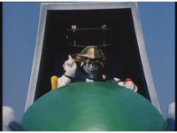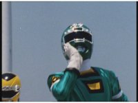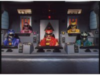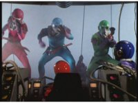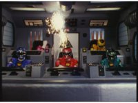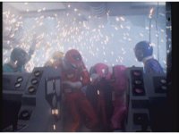In the Megazord cockpit, all five Rangers lift their Turbo Keys, then raise them, before Red inserts his on the console, and turning. |