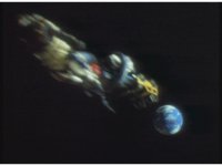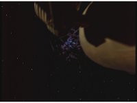 Elgar watches the Space Base twirl in space out Subcraft porthole. |