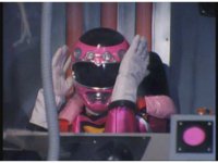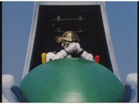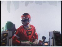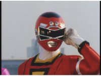 In Megazord cockpit, zoom in on Red as he crosses arms, raises a thumb. |