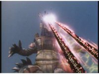 Metalasaurus fires eyebeams down, exploding behind the Rangers, taking them down. It taunts them, and they recover. |