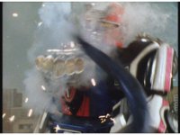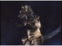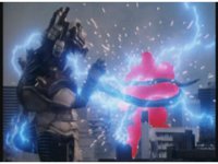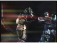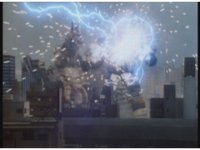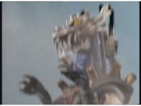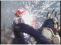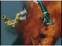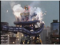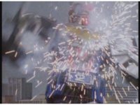 Havoc talks and wags his finger, before causing Metalasaurus to whip its tail sparkily into Turbo Megazord several times, finally wrapping the tail around it and with the press of a button, sending an electrical charge through the tail, spark bursting the Megazord. |