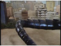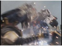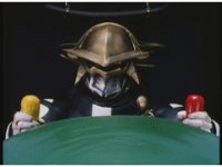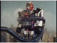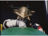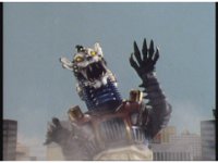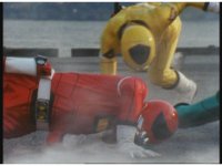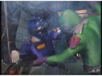With the Turbo Megazord still held prisoner in place by Metalasaurus' tail, and the sparking subsiding, Elgar sends the Chromites up on ropes, where they swarm all over the Megazord's damaged body. |