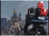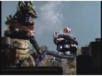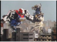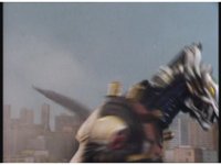 Turbo Megazord & Metalasaurus march in and begin to exchange sparking blows, before a final kick by Turbo dazes Metally. |