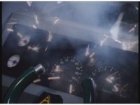 The cockpit spark bursts repeatedly, lights shutting off, the Rangers reacting in horror. |