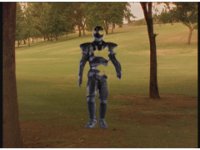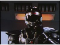 Artillatron pulls to a park, zoom in on its robotic head, inside, Phantom Ranger spins his chair and walks to us, talking into a handset. |