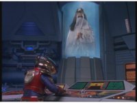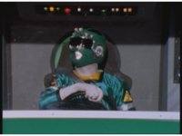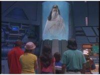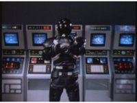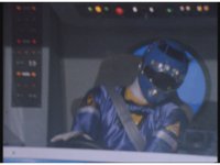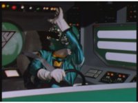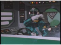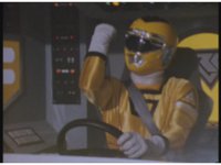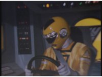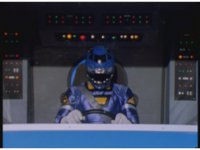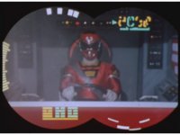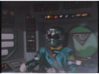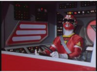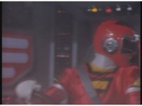 As the first segment opens, Red in his Rescuezord cockpit is already strapped in and ready to go. In the main cockpit, watching viewscreens, Phantom Ranger speaks to the others through the handset, and they listen. |