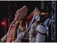 Observing the Turbo Megazord, General Havoc talks to Elgar, who soon shouts up at it. |