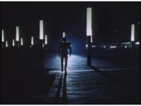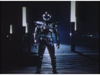 Phantom Ranger walks out of the shadows at night, and stands there. |