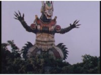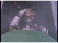 Push in, upward angle, on Metalasaurus in the forest, smoke clearing. Havoc in the cockpit consults a pamphlet, he then points to our right, and directs his beast Zord that way. |