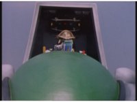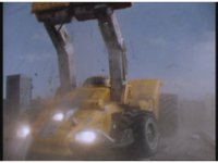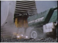 Yellow drives Star Racer forth, nod-talks, then uses its claw to catch the severed top half of the skyscraper, before handing it over to the anxious Green in Thunder Loader, who hauls it away. |