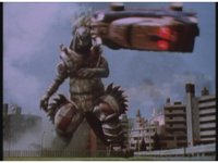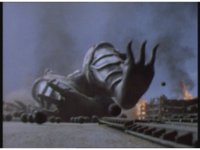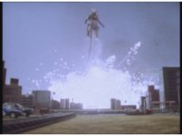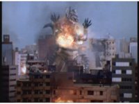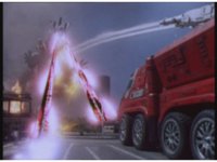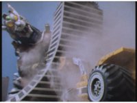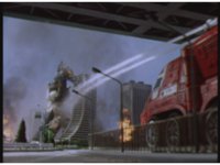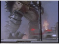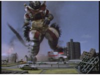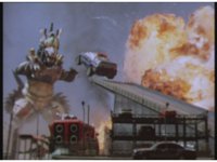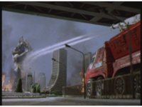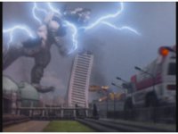 Havoc nod-talks, then works controls, making Metalasaurus fire eyebeams at the city around the skyscraper. |