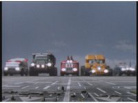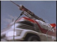 Pull out across the line of Rescuezords, Red visible in his cockpit window. The Rescuezords continue driving forth, lots of beauty shots of the detailed model work. |