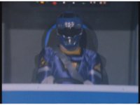 On the mini video screen, Havoc talks from his cockpit with a wagging of his finger. |
