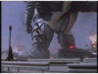 Ground level angle as Metalasaurus's giant feet trounce upon the already burning city streets. |