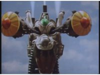 Blue nod-talks in his cockpit, then drives Siren Blaster up a ramp and leaps his Rescuezord right into Metalasaurus' mouth, spark bursting the beast before finally being flipped away. |