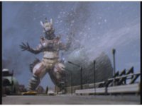 Continued, Metalasaurus reaches the nearest building, and looks like he's about to hit it. |
