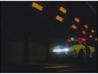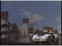 Inside the tunnel, Robo Racer continues driving. Evil Blue Senturion talks and shifts gear, causing his Zord to shift around, transforming out of patrol car mode. Upon exiting the tunnel, Robo Racer lifts off the road. |