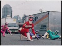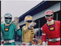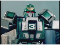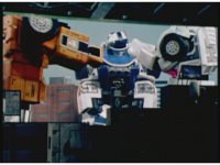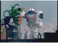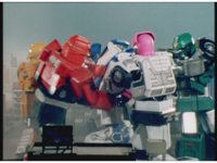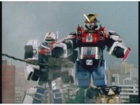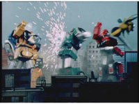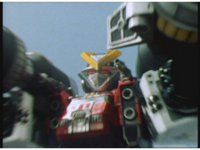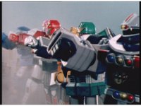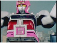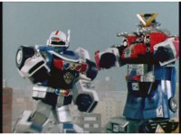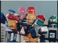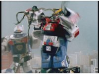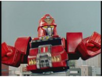 Cuts follow-up of Robo Racer & Rescue Megazord posing together. |