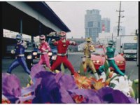 Red points and the Rangers rush in to try to clear the living vehicles of their vines, while also trying to shoo away the Bee Drones that buzz around in their faces, until eventually the Drones fire stinger bolts at the five. |