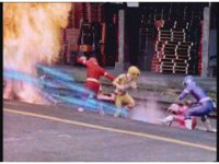 Robo Racer proceeds to go around, sparkily punching HS Rescuezords, as they put up minimal defense. |