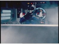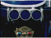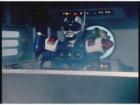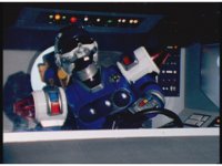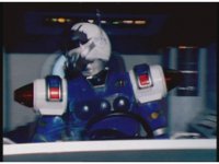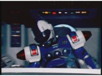 Blue Senturion's darkened signal bits magically turn back to normal, shaking him up in his cockpit. |