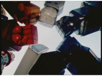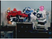 Each of HS Rescuezords lunges forth and grabs Robo Racer, slowly spinning it around, as Blue Senturion reaches out in protest and/or confusion. |