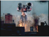Close, slight left pan, as firewall erupts behind the Rescuezords. |