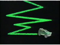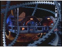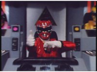 This same shot of the Megazord cockpit quickly tracks left repeatedly to imply motion a few times. |