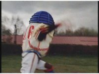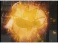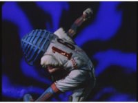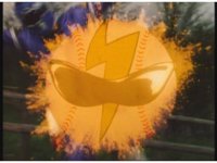 Strikeout, steaming, gets up, eyes flaming, then ball flaming, he does a special pitch, smashing it into Red explosively, knocking him down painfully. |