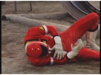 Strikeout laughs and taunts them with his magic ball. The Rangers writhe on the ground, with Red quickest to recover. |