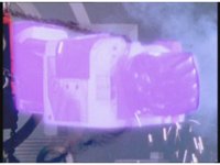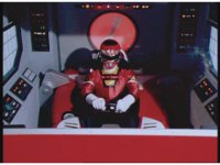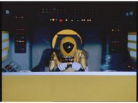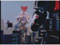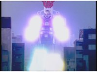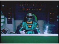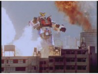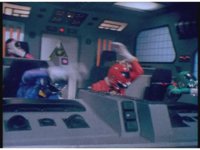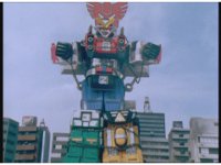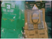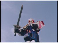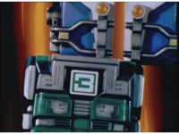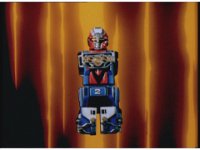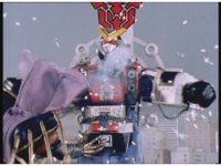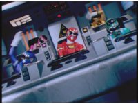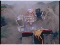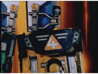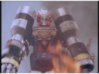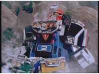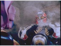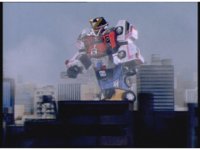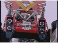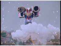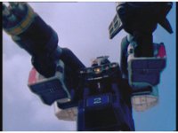 Zoom in on Turbo Megazord's stomach as Red lands in his singular cockpit, flips a switch, then causes the head to shift down from the top. |
