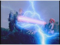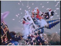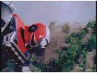 Red Lightning lands perfectly within Mountain Blaster, the Megazord head then flipping out. |
