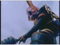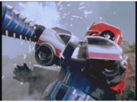 Count Nocturne staff bops Turbo Megazord sparkily, then grabs hold of it by the shoulder, and begins to shove it backwards, pushing it completely out of the city into the countryside, as the Rangers try in vain to halt the progression by braking, finally getting Turbo Megazord to stop the movement, only to have the monster headbutt it away. |