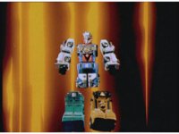 Rescue Megazord remains chained, but Green, Yellow & Pink hop in their cockpits, energize their Rescuezords, breaking the chains, then driving away from the still-chained Red & Blue section. |