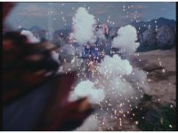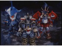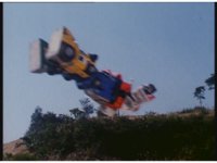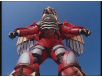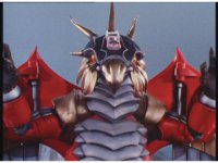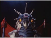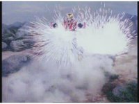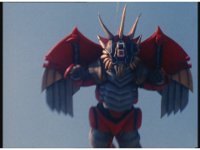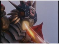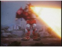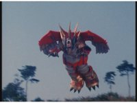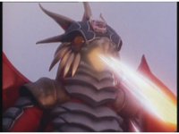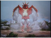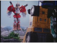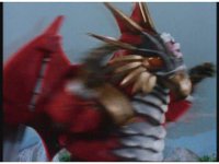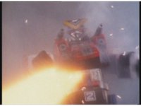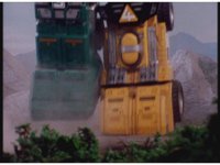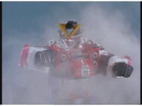 Divazord finally releases Rescue Megazord, tossing it into a mountain. While it lies there, Divazord fires more beak beams sparkily upon it. |