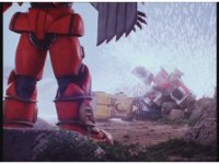 Cuts prior bit of lifting off in front of downed Megazord. |