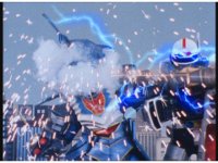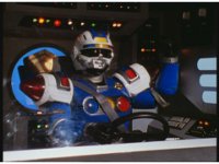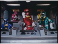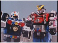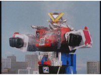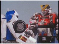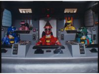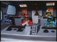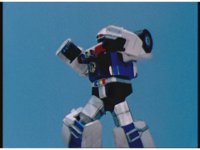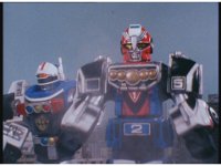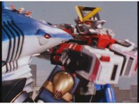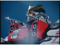 Robo Racer grabs the dazed Sharkzord, holding it forth, Blue Senturion nodding. Turbo Navigator pinpoints Porto atop the head, Pink gives a thumbs up, so Blue does the L-finger gesture and presses button. |
