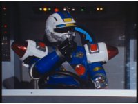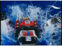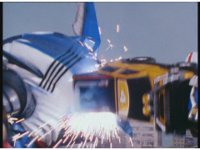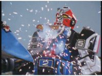 While Robo Racer holds it in place, the beam sparkily blasts Sharkzord's cockpit, knocking Porto out of his seat, and prompting Sharkzord to fall over lifelessly, Robo Racer raising an arm in victory. |