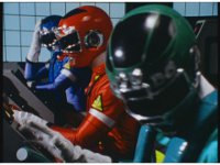 Pull out across the line of Rescuezords, Red visible in his cockpit window. |