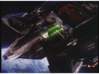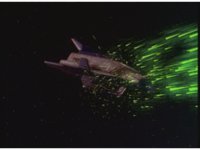 NASADA Shuttle, still being pelted with green tractor beams, slowly begins to spin around to puts its back end forth. |