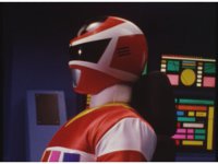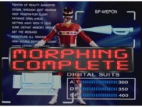 Red Space Ranger spins around, text & displays appear, including "MORPHING COMPLETE". |