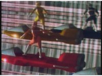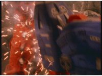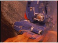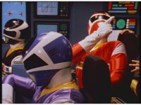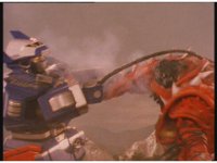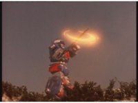 Cuts follow-up shot of energy beam firing out of Megazord; then Rangers reacting to parachute. |
