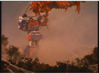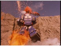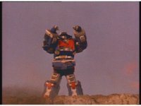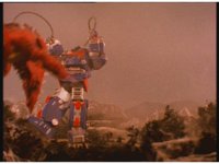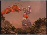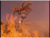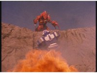 Pan up from the flames of the volcano, onto Astro Megazord, posing victoriously. |