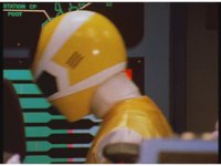 Yellow Space Ranger spins around, text & displays appear, including "MORPHING COMPLETE". |