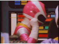 Pink Space Ranger spins around, text & displays appear, including "MORPHING COMPLETE". |