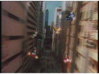 The Rangers on their Galaxy Gliders surf about through the city. |