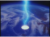 Blue electricity strikes the Earth, creating an expanding glowing focus point. |