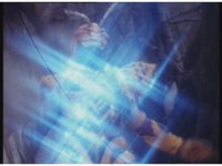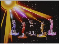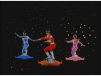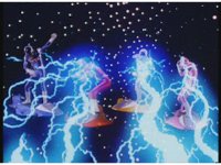 In space, Galaxy Glider-surfing Blue, Red, & Pink join up with Yellow, just in time for all to get struck by the blue electricity from an unseen assailant. |