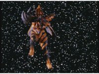 Sting King floats in from our right in space, then fires his right stinger arm forth. |