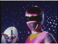 Pink Space Ranger spins around, text & displays appear, including "MORPHING COMPLETE". |